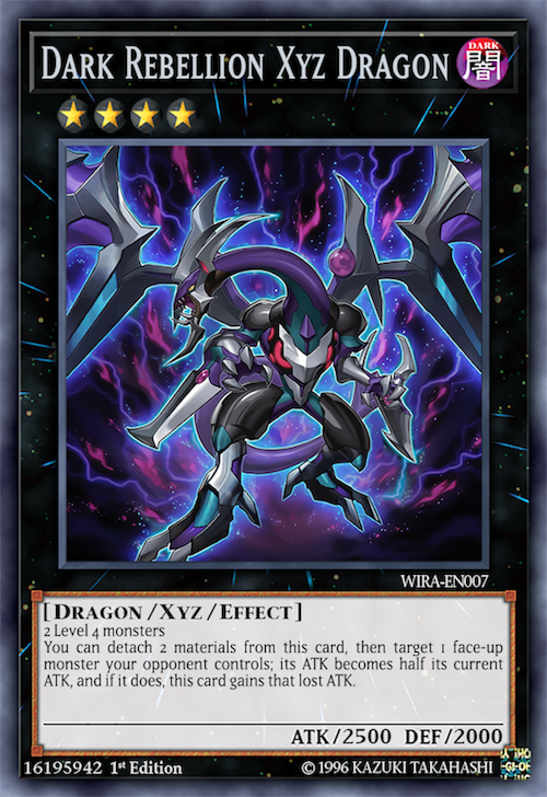 - Còn đối với Arc Rebellion Xyz Dragon người chơi có thể triệu hồi dễ dàng bằng hiệu ứng của Raider’s Knight, khả năng của lá bài này giúp nó tăng ATK bằng tổng ATK gốc của tất cả các quái thú trên sân nhưng người sử dụng chỉ có thể dùng mỗi lá bài này để tấn công đến cuối lượt. Và đặc biệt nếu có quái thú DARK Xyz làm nguyên liệu Xyz thì nó còn có khả năng vô hiệu hóa toàn bộ hiệu ứng của quái thú trên sân. Một khả năng OTK không thể nào mạnh hơn!