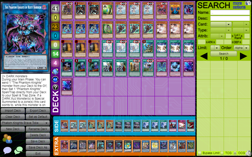 Dù có sự liên kết và khả năng combo tốt nhưng Phantom Knights chưa hẳn là một sự lựa chọn toàn diện, rất dễ bị khắc chế bởi một số handtrap như Artifact Lancea, Nibiru, the Primal Being, Droll & Lock Bird, Ash Blossom & Joyous Spring và đặc biệt khiến bộ bài vẫn được sử dụng nhiều ở TCG nhưng ở OCG thì rất ít, hung thủ không ai khác ngoài Maxx “C”. Và tại set Burst of Destiny thì với sự ra mắt của Brave Token, nó đó khiến các bài thủ trên các thế giới ồ ạt đem đi đánh thuê và Phantom Knights Brave Token đã lên top meta cuối tháng 9 và đầu tháng 10 của OCG.