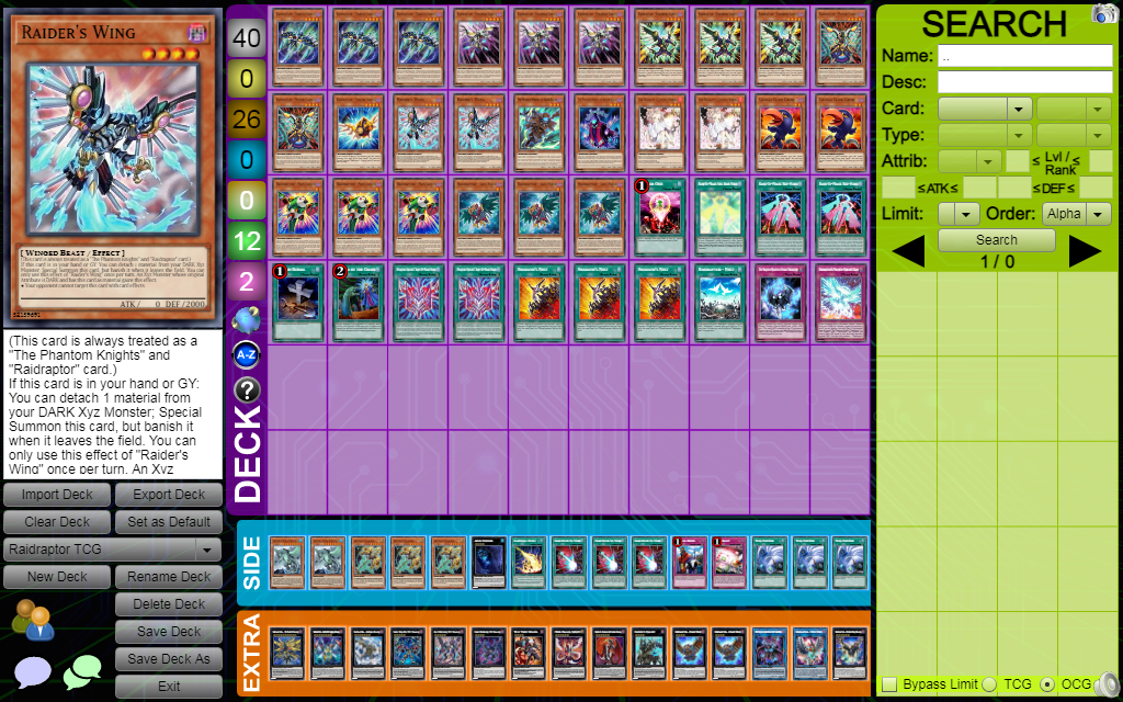 - Người chơi khi sử dụng hiệu ứng của Raider’s Knight có thể tách 1 nguyên liệu từ lá bài này ra để triệu hồi đặc biệt từ Extra Deck 1 quái thú Xyz Phantom Knight. Raidraptor hay Xyz Dragon có Rank lớn hơn hoặc nhỏ hơn 1 so với Rank của lá bài này bằng cách sử dụng chính Raider’s Knight làm nguyên liệu và chuyển giao số nguyên liệu hiện tại của lá bài này cho quái thú được triệu hồi và nhưng quái thú được triệu hồi sẽ bị destroy vào cuối End Phase tiếp theo của đối phương. Với hiệu ứng này của mình, nó có thể giúp người chơi lên được những Xyz Dragon cực mạnh (sẽ nói rõ ở phần kế) với mục đích OTK đối thủ. Hoặc khi đi sau thì lá bài này với The Phantom Knights of Break Sword có thể đem lại cho người chơi có thể nhiều nhất là 2 lần bắn phá liên tiếp, gây ra sự khó chịu không hề nhỏ.