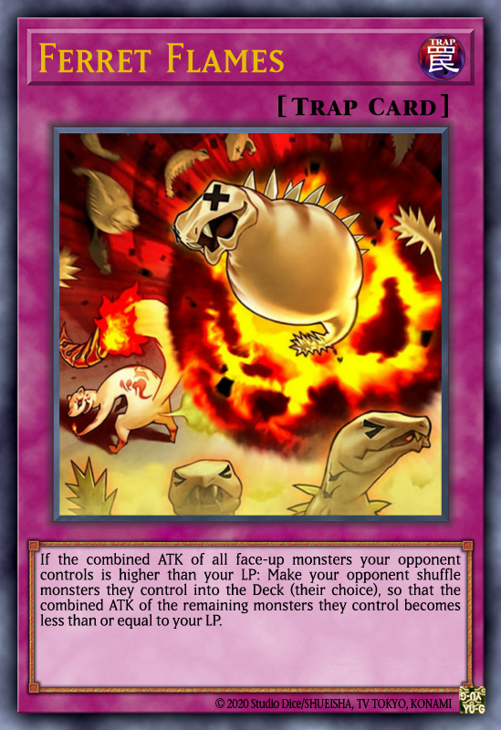Clash of Rebellions cho ra mắt một lá bài bẫy mang tên Ferret Flames đã bị mọi người chơi phớt lờ và bỏ rơi tại thời điểm đó sự chú ý được tập chung vào lá bài Storming Mirror Force. Hiệu ứng không quá mạnh khi chỉ có tác dụng vào những lượt cuối của trận đấu. Bộ bài Dinomorphia đã giúp cho lá bài sử dụng được hiệu quả hơn khi lối chơi của archetype này luôn xoay quanh việc giữ máu ở rất thấp để Dinomorphia Rexterm có thể ngăn cho đối thủ được chơi với hiệu ứng như là một Skill Drain di động.