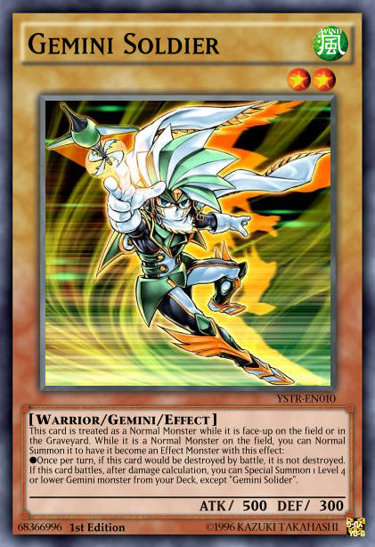 Nếu như bạn triệu hồi Gemini Soldier trong lượt của đối thủ gần đặc biệt vào gần cuối lượt của họ, thì bạn sẽ bắt đầu lượt tiếp theo của mình với một Gemini sẵn sàng được triệu hồi khi không phải tốn mất Battle Phase của mình. Kết quả là Gemini Soldier có thể trở nên dễ chơi hơn đáng kể và có thể thực hiện thành công hiệu ứng của mình nhiều lần trong một trận đấu.
