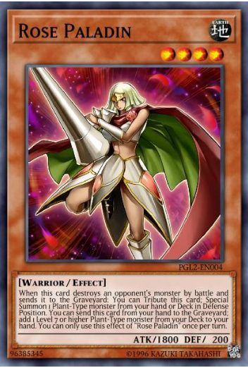 Tất nhiên, chỉ là vấn đề thời gian trước khi các quái thú Plant cấp cao giúp cho Rose Paladin có thể được sử dụng lần đầu tiên. Bây giờ Paladin chỉ được chơi trong bộ bài Rikka nơi mà nó có thể lấy được 2 lá bài Therion "Lily" Borea và Snowdrop the Rikka Fairy.