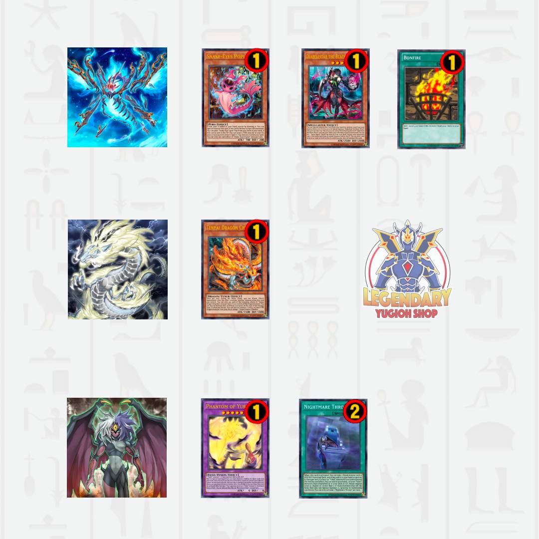 “Tam quốc diễn nghĩa” - Snake-Eye, Tenpai, Yubel - đều bị hit nặng nề. Tất cả các starter của Snake-Eye đều đã có số 1 trên đầu (trừ Sinful Spoils Deception mới ra mắt), Beatrice bị ban khiến Fiendsmith không còn là backup extender hiệu quả nữa. Tenpai chỉ với 1 Sangen Summoning 1 Chundra thì quá khó để bơi qua các disrupt của đối thủ. Yubel cũng bị càn quét khi không thể spam Phantom of Yubel, mất 1 Nightmare Throne và Beatrice access mọi thứ, có lẽ người chơi Yubel đang mong ngóng Aerial Eater và Necroquip Princess hơn bao giờ hết.