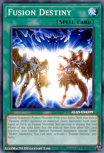 Tôi sẽ không nói nhiều về quái vật mà lá bài này dùng để triệu hồi, tất cả những gì tôi sẽ nói là boss của Destiny HERO từ Burst of Destiny rất đáng để sử dụng, bất kể giá của nó là bao nhiêu. Bạn có thể mong đợi toàn bộ bài báo về nó từ những nhà văn đồng nghiệp của tôi ở đây từ lâu. Bây giờ, để sở hữu được con quái vật đó, bạn cần phải có Fusion Destiny. Về cơ bản, nó giống với Red-Eyes Fusion nhưng cung cấp cho chúng ta một giải pháp thay thế cho Red-Eyes Dark Dragoon. Hoàn toàn có thể mong đợi để thấy Fusion Destiny xuất hiện trong rất nhiều bộ bài để chứa boss mới. Kết hợp điều đó với Predaplant Verte Anaconda và bạn có một phiên bản 2.0 mới của Dragoon.