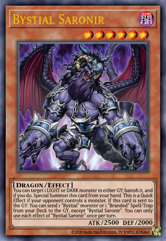 - Triệu hồi đặc biệt Bystial Saronir lên sân bằng cách banish Red Dragon Archfiend ở dưới mộ