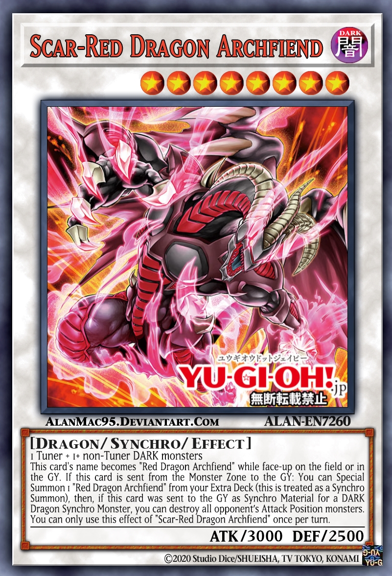 - Triệu hồi Synchro Hot Red Dragon Archfiend Abyss sử dụng Scarred Dragon Archfiend và Synkron Resonator
