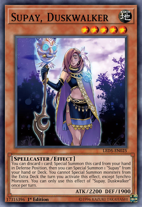 Có một số engines bạn lên cân nhắc sử dụng trong bộ bài này đó là Supay, Duskwalker và Supay sẽ giúp discard Crimson Resonator và sau đó triệu hồi synchro Red Rising Dragon một cách dễ dàng khi không cần sử dụng dến lượt triệu hồi thường. Nếu như muốn đi theo hướng Build này thì nên chơi tối đa mỗi quái thú Crimsonator và thêm Foolish Burial vào bộ bài.