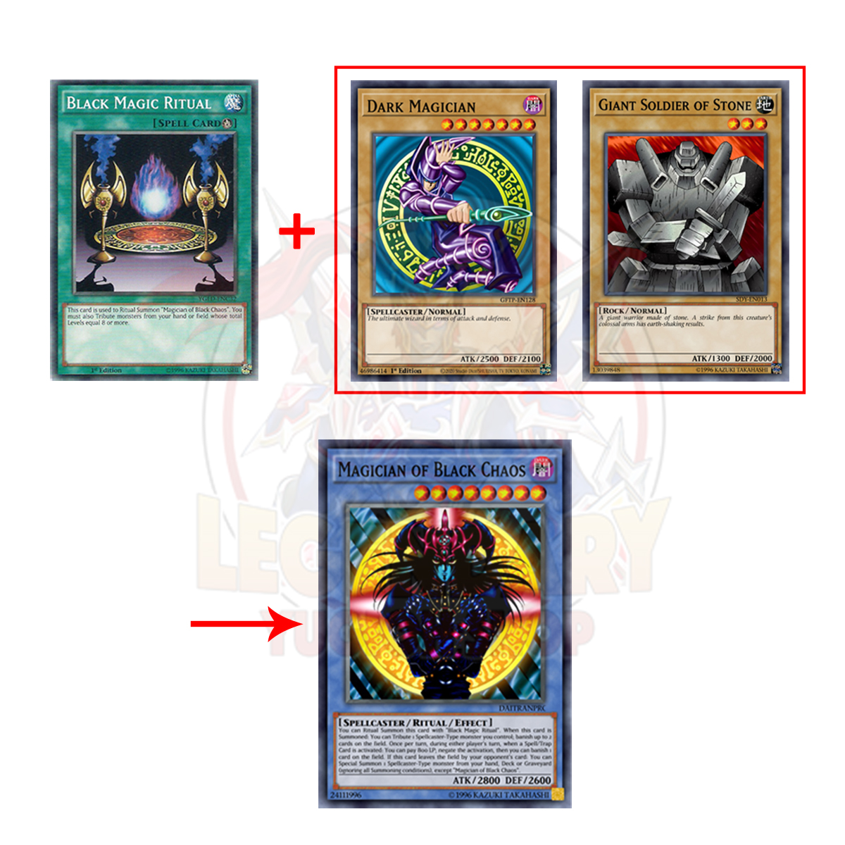 Tổng số sao của Dark Magician và Giant Soldier Stone là 10, nhiều hơn số sao yêu cầu để Ritual Summon Magician of Black Chaos là 8 nên hoàn toàn đủ điều kiện