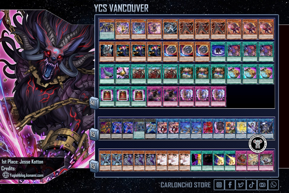 Để tham khảo, đây là decklist của Á quân World Master Duel - Jesse Kotton đã sử dụng để giành được Chiến thắng YCS thứ năm và chức vô địch thứ sáu trong sự nghiệp tại Vancouver.