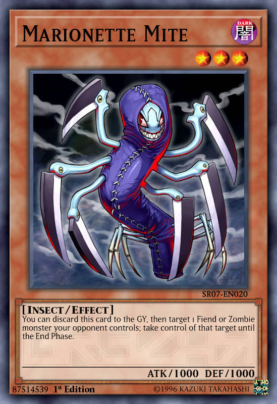 Side card đang được mọi người để mắt tới gần đây, Marionette Mite đã được Jesse Kotton sử dụng trong các trận đấu Mirror Match (2 người chơi sử dụng 1 bộ bài giống nhau) khi cho phép chiếm quyền kiểm soát 1 quái fiend hoặc zombie trên sân của đối thủ. Với cùng một hiệu ứng như vậy ta có Change of Heart, Triple Tatics Talent,... những lá bài này vô cùng hữu dụng khi đối đầu với Unchained khi có thể đánh cắp con Boss gây khó khăn cho bạn cũng như việc loại bỏ nó.