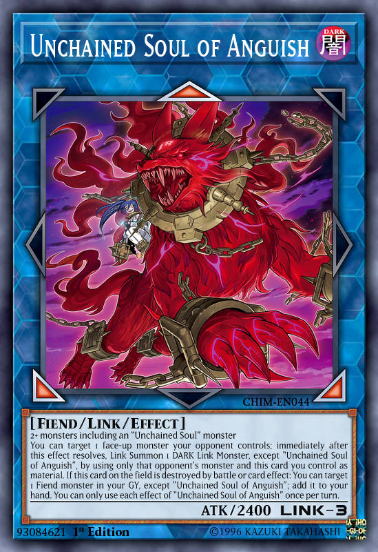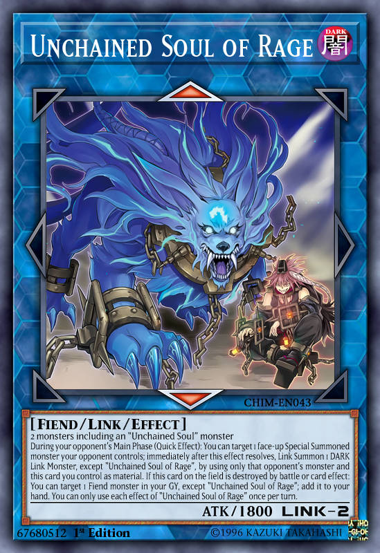 Unchained Soul of Rage và Unchained Soul of Rage of Anguish hai quái thú Link với hiệu ứng gần như tương đồng nhau khi cả 2 đều cho phép sử dụng một quái thú của đối thủ để làm nguyên liệu cho một quái Link hệ bóng tối và khi bị tiêu diệt bởi hiệu ứng hay battle sẽ được cầm lại một quái Fiend ở dưới mộ lên tay, khác nhau duy nhất là Unchained Soul of Rage là quick effect (hiệu ứng nhanh) nhưng chỉ có thể sử dụng được trong lượt đối thủ còn Unchained Soul of Rage là hiệu ứng chậm.