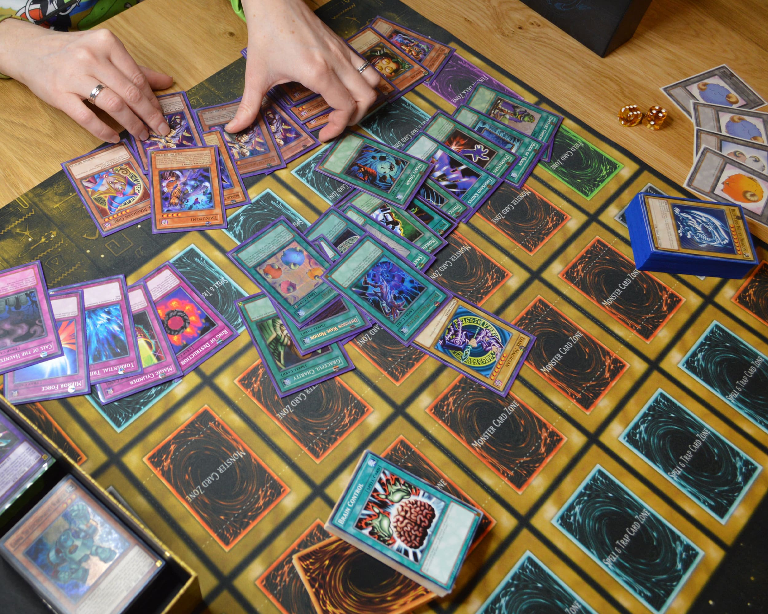 Thứ 2 là Playmat (bàn đấu), các bạn có thể dùng gần như mọi loại playmat mà mình thích. Nhưng nếu các mới tham gia lần đầu, một lời khuyên cho người mới đó là nên dùng các loại Playmat có ô để có thể xác định được đúng vị trí các lá bài cũng như có cảm quan tốt hơn về trận đấu. Ngoài ra, việc có Playmat giúp bảo vệ bộ bài và sleeve tốt hơn, làm giảm thiểu khả năng phải thay bọc bài của người chơi.