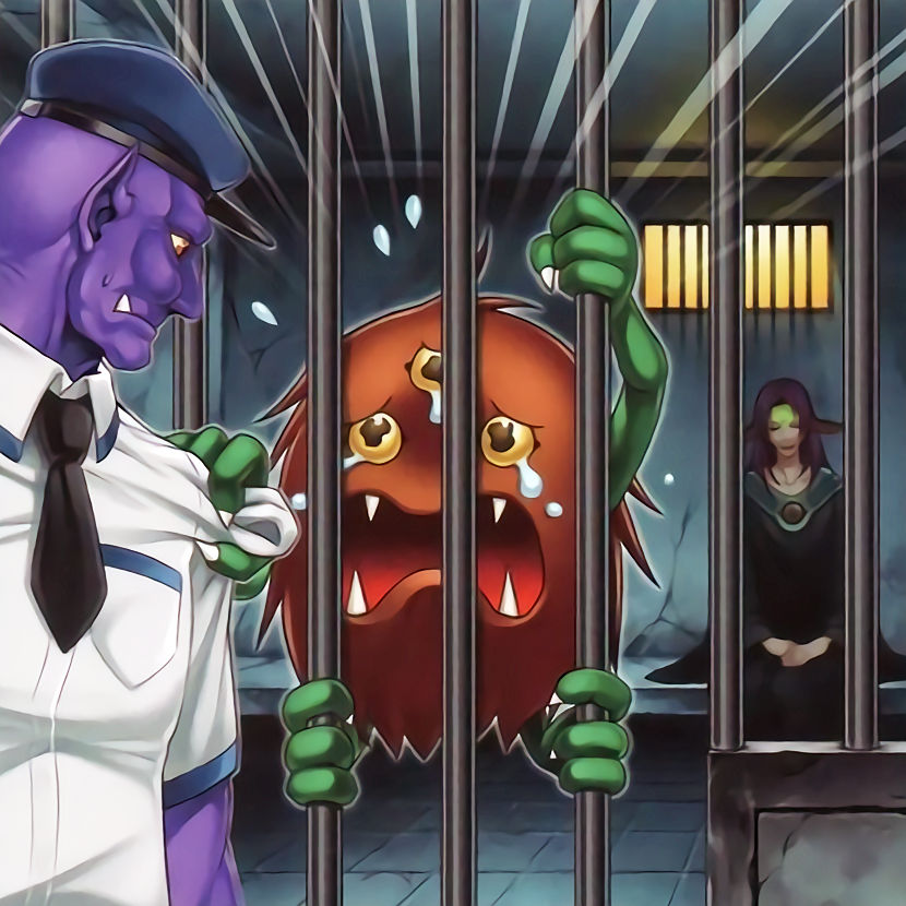 Bất chấp những nỗ lực chứng minh mình vô tội, Sangan cuối cùng vẫn phải ngồi tù. Dù cho cậu tiếp tục khóc, la hét và la mắng người lính canh về việc cậu vô tội và đang bị giam giữ một cách vô cớ, nhưng vô ích. Cuối cùng cậu vẫn phải ở trong phòng giam của mình cùng với Witch of the Black Forest, một lá bài khác cũng đang bị cấm với khả năng gần như y hệt của Sangan trong trò chơi.
