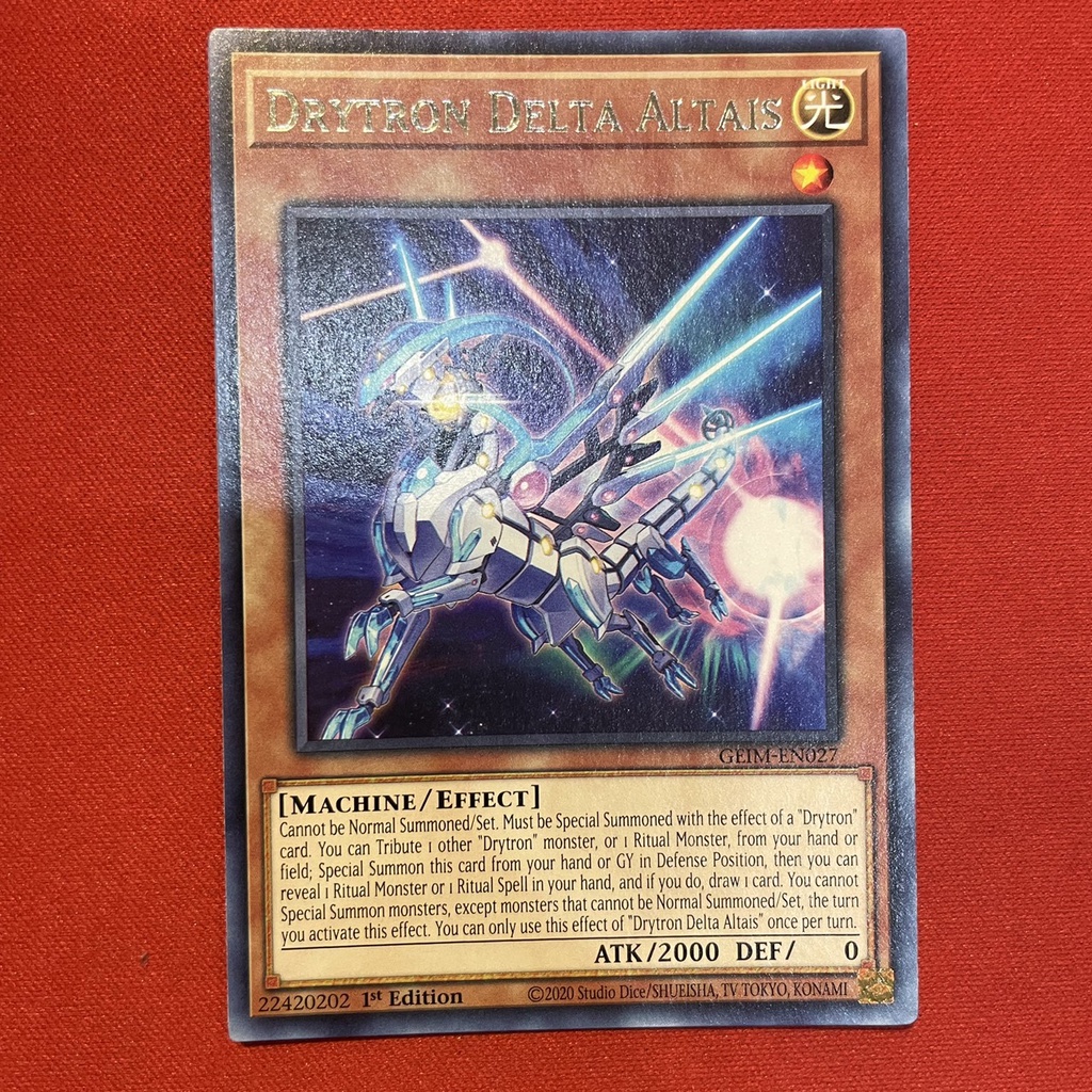 [Thẻ Bài Yugioh Chính Hãng] Drytron Delta AltaisLà lá bài của trò chơi Yugioh- Thẻ bài chính hãng 100% từ Konami.- Kích thước: 5.9cm x 8.6cm.- Hàng mới 99%.- Được bọc cẩn thận ngay sau khi bóc pack ra.- Có thể để chơi, tặng cho bạn bè, hoặc để sưu tầm.- Shop nói không với hàng FAKE, tất cả đều là card CHÍNH HÃNG, không trầy xước, không hỏng mép, không nhàu nát,...- Đảm bảo quyền lợi, nâng cao trải nghiệm chơi YUGIOH cho khách hàng.- Trọng lượng: 5gr#Yugioh #Thebai #chinhhang #dochoitreem #Jp #En #Konami #Likenew