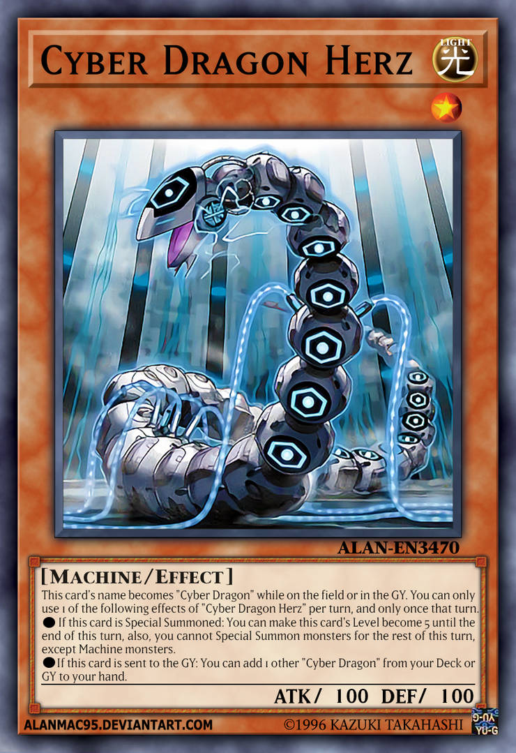 Và Cyber Dragon Herz còn cho ta khả năng thêm lên tay 1 “Cyber Dragon” dưới GY hoặc trong Deck, chưa kể bạn có thể biến lá này thành Level 5 để có thể dễ dàng hơn trong việc Xyz Rank 5 ra Cyber Dragon Nova.