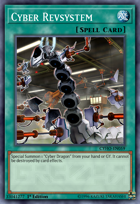 Kích hoạt Cyber Revsystem thì mang lại khả năng Special Summon Cyber Dragon từ cả hand hoặc Deck không giới hạn số lần sử dụng trong lượt.