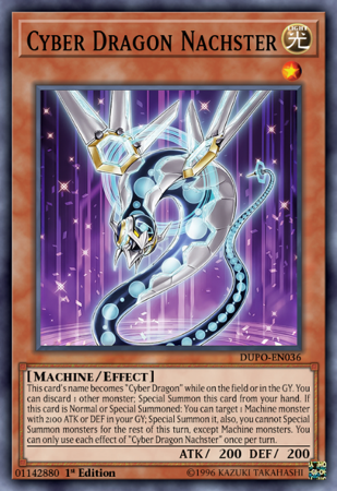 Cyber Dragon Nachster với khả năng tự Special Summon bằng cách hy sinh 1 quái thú trên tay để có thể kéo lên 1 Cyber Dragon monster với 2100 ATK dưới mộ nhưng cũng sẽ đi kèm hạn chế nên cần phải tính toán thật kĩ trước khi sử dụng.