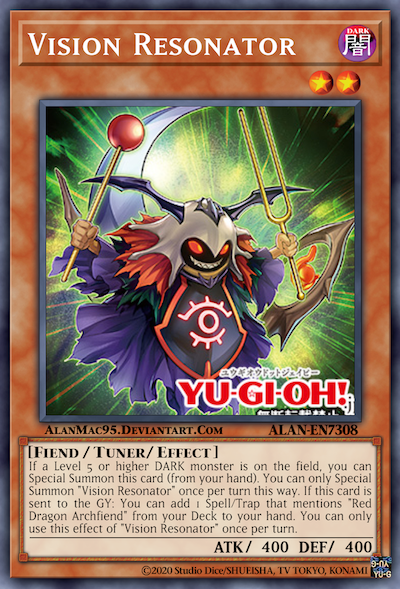 Ngoài ra, một sự kết hợp khác cũng không tồi đó là Resonator bởi Stone Sweeper có thể tìm kiếm Vision Resonator vì nó cũng là 1 Fiend và có cấp độ 2. Khi Vision bị gửi xuống mộ thì sẽ tìm được Crimson Gaia và lá Spell này lại thêm chính Vision Resonator từ bộ bài để tăng cường tài nguyên cho người chơi.