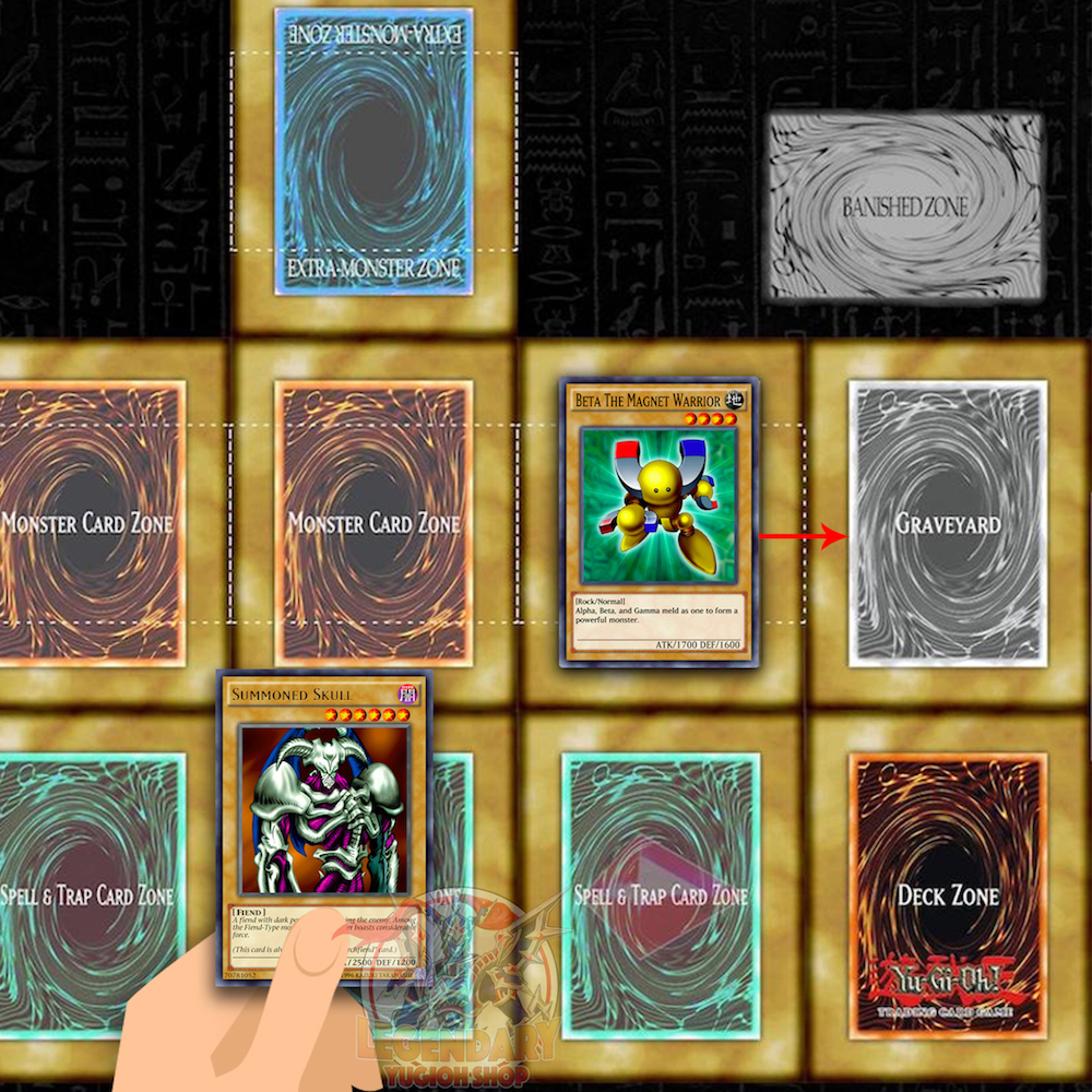 Tribute Summon quái thú cấp độ 5 hoặc 6 Sao, đầu tiên hãy hiến tế 1 quái thú và đưa chúng xuống Mộ (Graveyard)