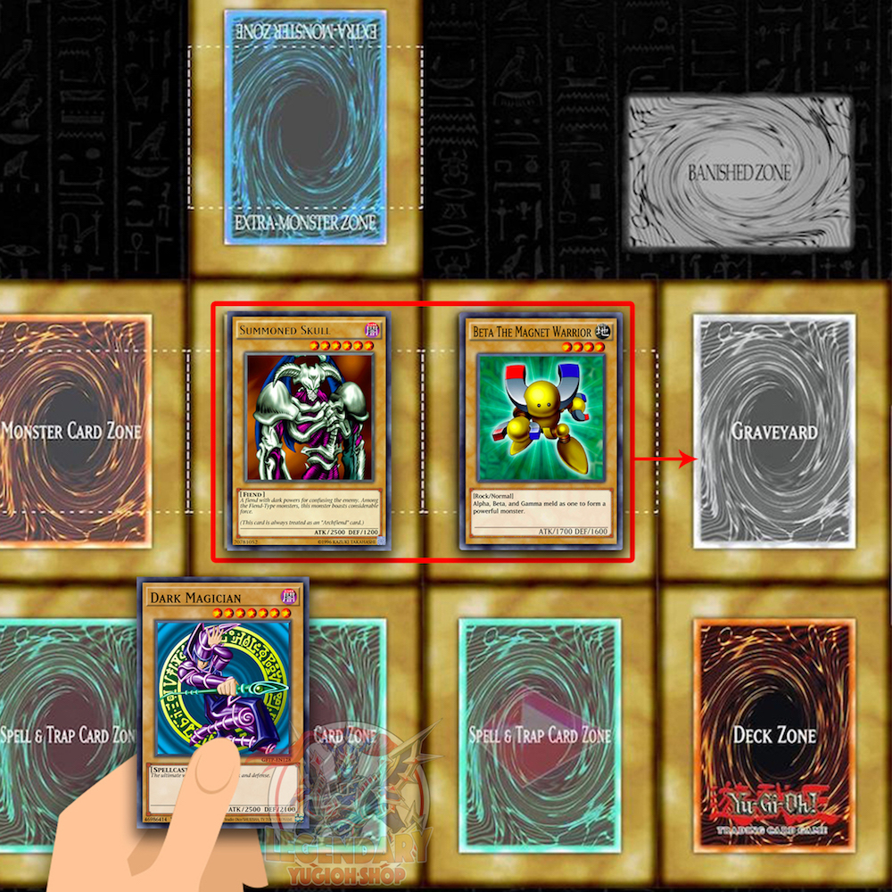 Sau khi hiến tế đủ 2 quái thú thì Dark Magician sẽ được Tribute Summon thành công