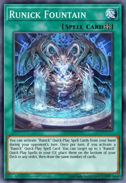 Runick là 1 archetype tập trung vào các quick-play spell có khả năng banish top deck của đối thủ, khắc phục nhược điểm làm dày mộ đối phương của 1 deck Mill thông thường. Với artwork sử dụng góc nhìn thứ nhất cùng lối chơi dễ gây liên tưởng tới 1 trận đấu boss trường kì, Runick mang cảm giác của 1 game RPG dưới hình hài những lá bài.