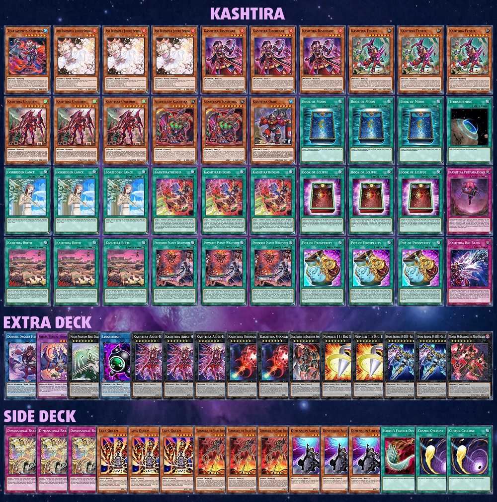 Lưu ý rằng những gì sau đây không phải là danh sách toàn diện, mà chỉ là một hướng dẫn tham khảo nhanh cho việc sử dụng hand trap giá trị của bạn tốt nhất. Bạn có thể tìm thấy các ghi chú và giải thích bổ sung bên dưới! Đồng thời cũng có một danh sách bộ bài Kashtira mang tính chất tham khảo để đưa ra những đối sách.