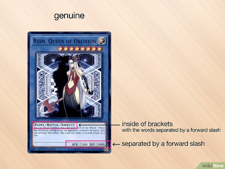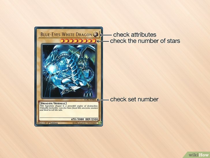 Kiểm tra tên và thông số của các lá bài mà bạn mua. Ngay cả khi bạn mua các lá bài từ một cửa hàng bán lẻ lớn hoặc bao bì được niêm phong, bạn không thể không kiểm tra xác thực. Đảm bảo rằng các lá bài là chính hãng trước khi thêm chúng vào bộ bài của bạn bằng cách kiểm tra lá bài có tên đúng và chứa thông số thật của nó.