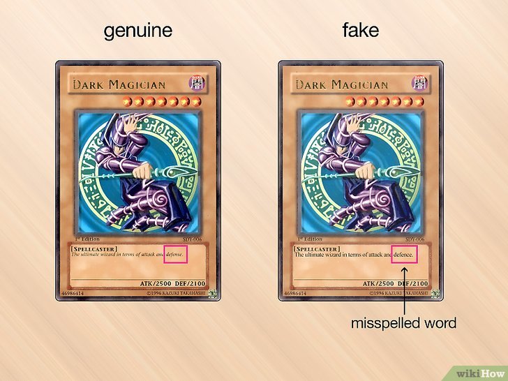 - Kiểm tra lá bài của bạn để xem có font chữ kỳ quặc, lỗi chính tả/ ngữ pháp và chữ thường trong tên hay không. Nếu lá bài của bạn có bất kỳ vấn đề trên, thì đó là hàng giả.