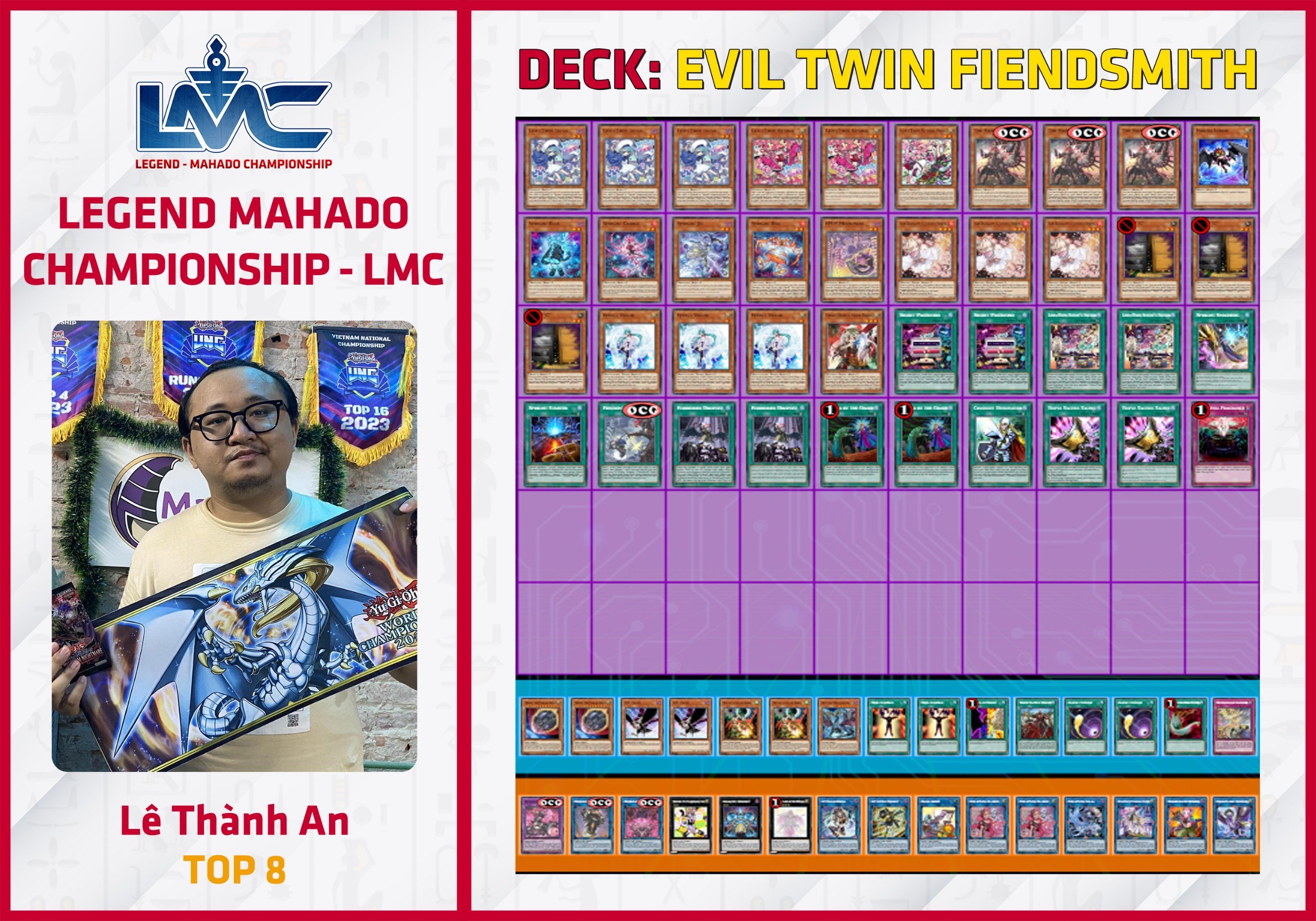 Fiendsmith tiếp tục thể hiện vì sao mình đang là engine mạnh nhất game hiện tại. Giờ đây không chỉ những bộ bài Top Tier như Snake-Eyes, Yubel mix engine Fiendsmith, mà ngay cả những bộ bài tier thấp hơn như R-ACE, Evil Twin, Magical Musketeer,… cũng mix với engine và thể hiện kết quả rất tốt tại giải đấu lần này.