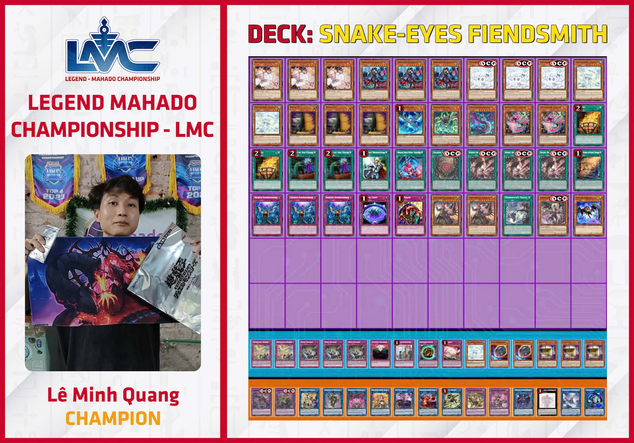 Sau giải đấu LMC Final này, chúng ta đã có kết quả BXH. Với số điểm bằng nhau, Đỗ Huy Mạnh và Nguyễn Như Phúc đã chia sẻ vị trí Quán Quân. Đây có lẽ là giải đấu cuối cùng mà Tenpai Dragon của Đỗ Huy Mạnh được tung hoành, trước khi banlist tháng 10 đến và “quét” đi những gì còn lại của Deck. Câu chuyện tương tự với bài thủ Nguyễn Như Phúc khi bộ bài yêu thích của anh qua 2 mùa giải, Snake-Eyes, cũng nhận những đòn giáng từ Banlist rất nặng.