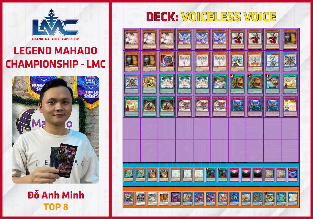 Về thứ 3 trong BXH là bài thủ Hoàng Minh Hiếu với bộ bài cũng vô cùng yêu thích của anh, Snake-Eyes và bài thủ Vũ Hoàng Chương bay bổng với Voiceless Voice. Có lẽ trong mùa giải tới, các bài thủ này sẽ phải cố gắng thay đổi rất nhiều nếu muốn cạnh tranh ở ngôi đầu khi áp dụng Banlist mới.