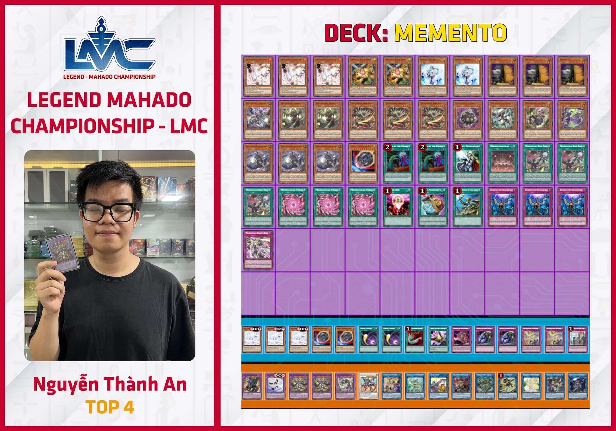 Giải đấu lần này quy tụ 16 bài thủ, và diễn ra ngay sau khi set Rage of the Abyss (ROTA) ra mắt. Chính vì vậy, không có quá nhiều bài thủ kịp cập nhật những lá bài mới trong ROTA. Engine Fiendsmith tiếp tục có những lá bài rất mạnh trong main booster mới này, hứa hẹn sẽ thống trị các giải đấu LMC tiếp theo.
