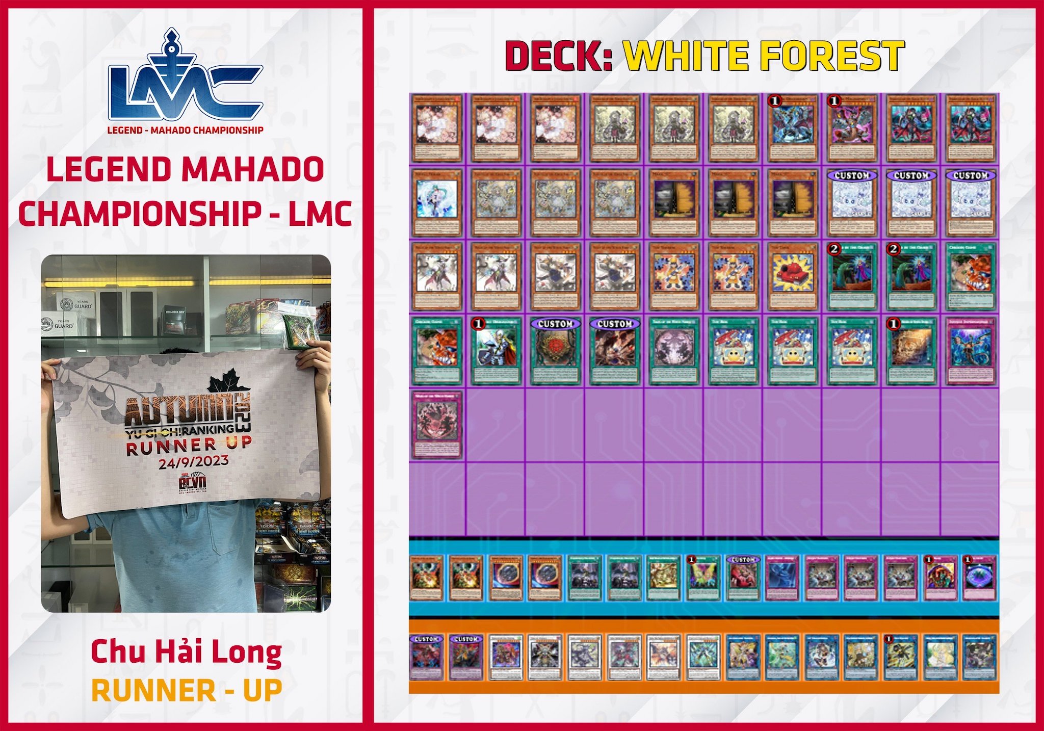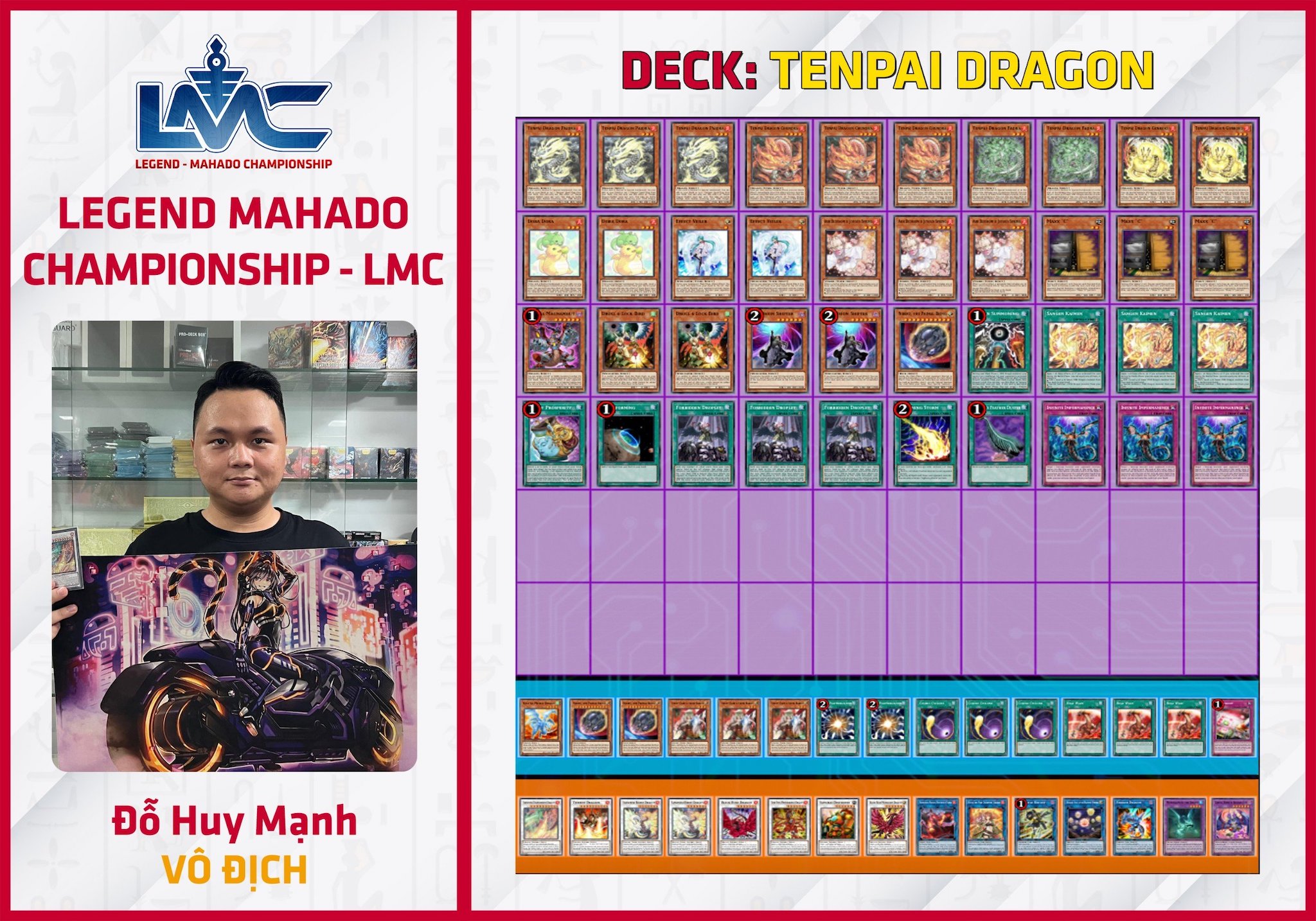 Một mùa giải mới của LMC lại bắt đầu! Chủ Nhật ngày 28/7 tuần vừa qua, LMC đầu tiên của mùa giải thứ hai đã được tổ chức tại Legendary Yugioh Shop và chức vô địch thuộc về bài thủ Đỗ Huy Mạnh với bộ bài Tenpai Dragon.