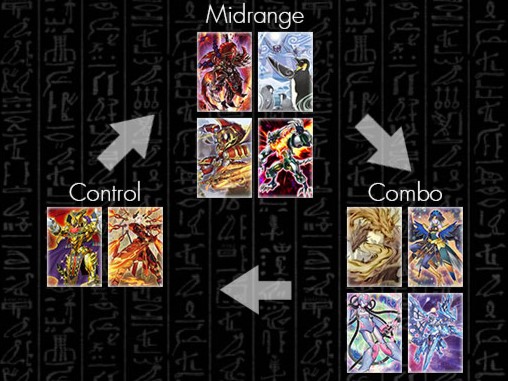 Midrange Deck: Là sự kết hợp giữa Combo và Control Deck, điển hình của chiến thuật này là những Deck với 1-2 card combo và chơi nhiều handtrap (ví dụ: Salamangreat, Swordsoul, ...)