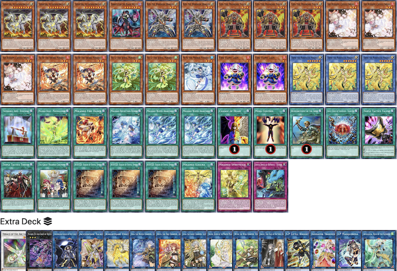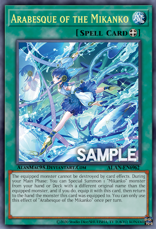 Spell quan trọng bậc nhất và luôn cần rút lên sớm đó chính là Mikanko Water Arabesque - Lá bài trang bị có thể Equip bất cứ quái thú nào (kể cả của đối thủ) rồi gọi trực tiếp từ bộ bài 1 Mikanko đồng thời đẩy về tay quái thú được trang bị trước đó. Đây là Equip Spell vừa đóng vai trò Starter và có thể vượt qua các Boss Monster khó nhằn có khả năng vô hiệu hóa như Baronne De Fleur, Borreload Savage, Apollousa,....