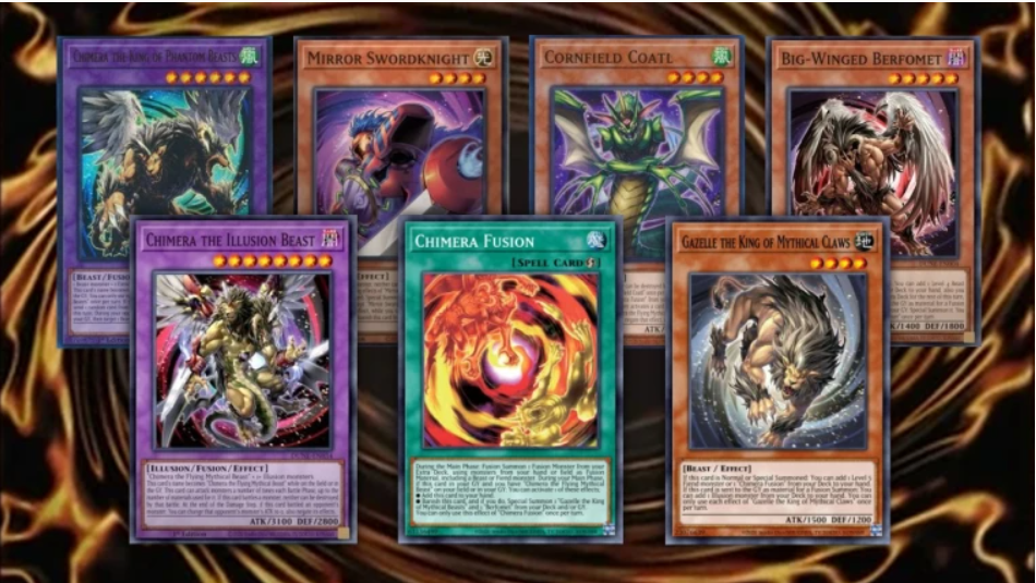 Tiếp theo là Chimera Fusion, một quickplay spell sử dụng nguyên liệu ở trên tay hoặc sân bao gồm một Beast hoặc Fiend monster. Hiệu ứng dưới mộ cho phép người chơi cầm lại khi có Chimera the Flying Mythical Beast ở trên sân hoặc dưới mộ. Vì lá bài này chỉ đươc Fusion summon ở main phase nên ta có thể sử dụng các lá bài có Quick Effect (hiệu ứng tức thời) để tiêu diệt các phép/bẫy như Cosmic Cyclone, Twin Twisters,... ở draw phase hoặc standby phase để lấy lợi thế.