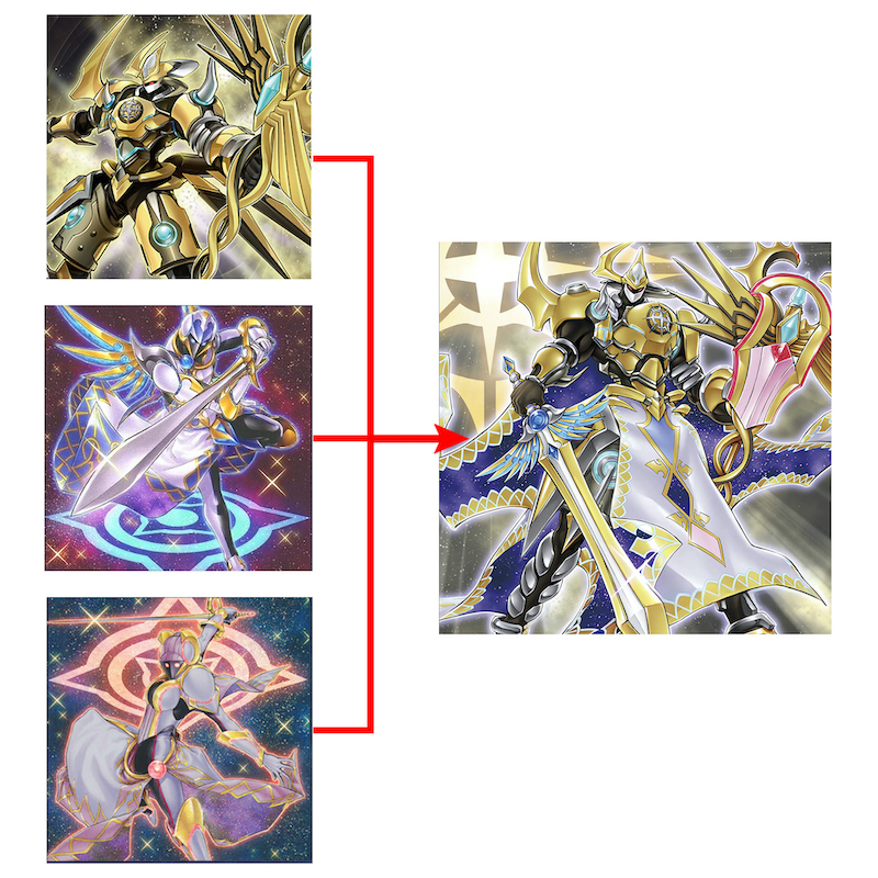 (Ảnh Constellar Caduceus + Tellarknight Altairan + Tellarknight Lyran → Tellarknight Constellar Caduceus)