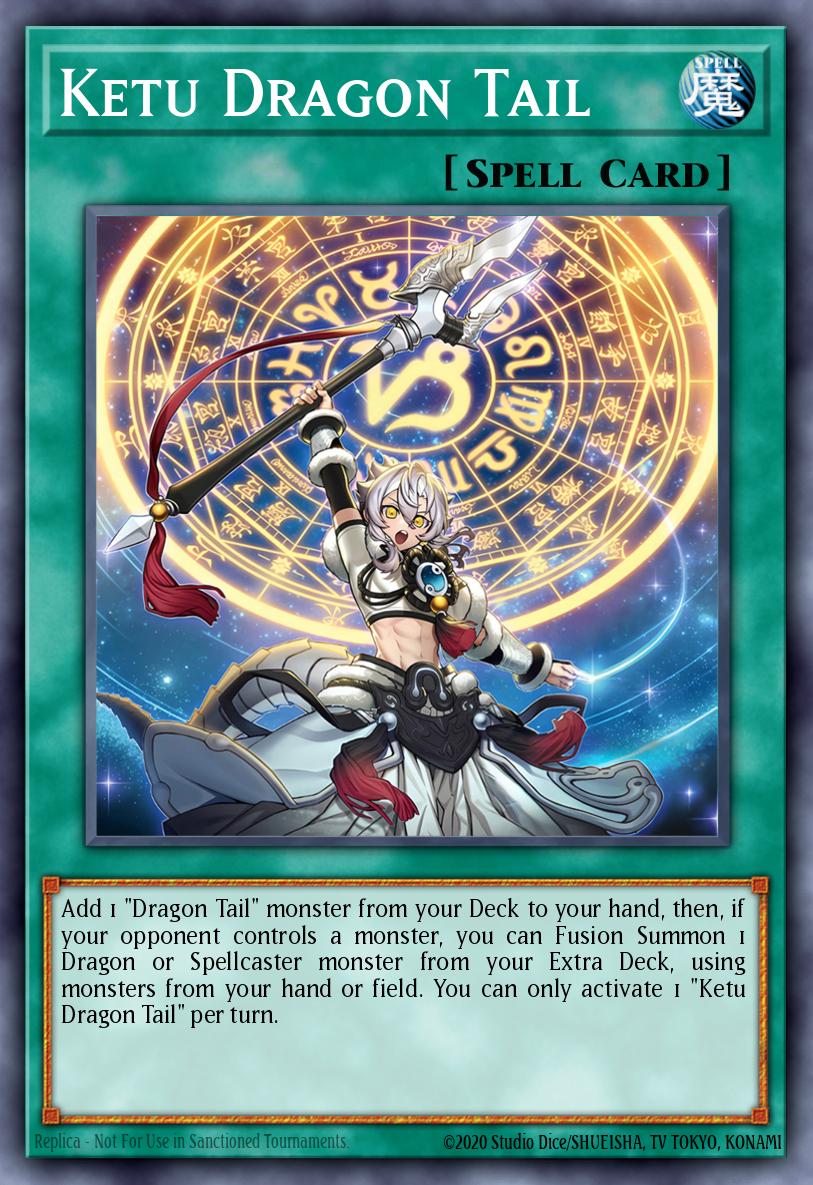 Những lá Spell Card của Dragon Tail tập trung chủ yếu vào Fusion Summon. Ketu Dragon Tail vừa là Spell search của archetype, vừa có khả năng Fusion Summon nếu đối thủ có quái trên sân. Mặt khác, Rahu Dragon Tail chính là phiên bản mini của Branded Fusion, do các Fusion của Deck đều yêu cầu phải có nguyên liệu từ tay.
