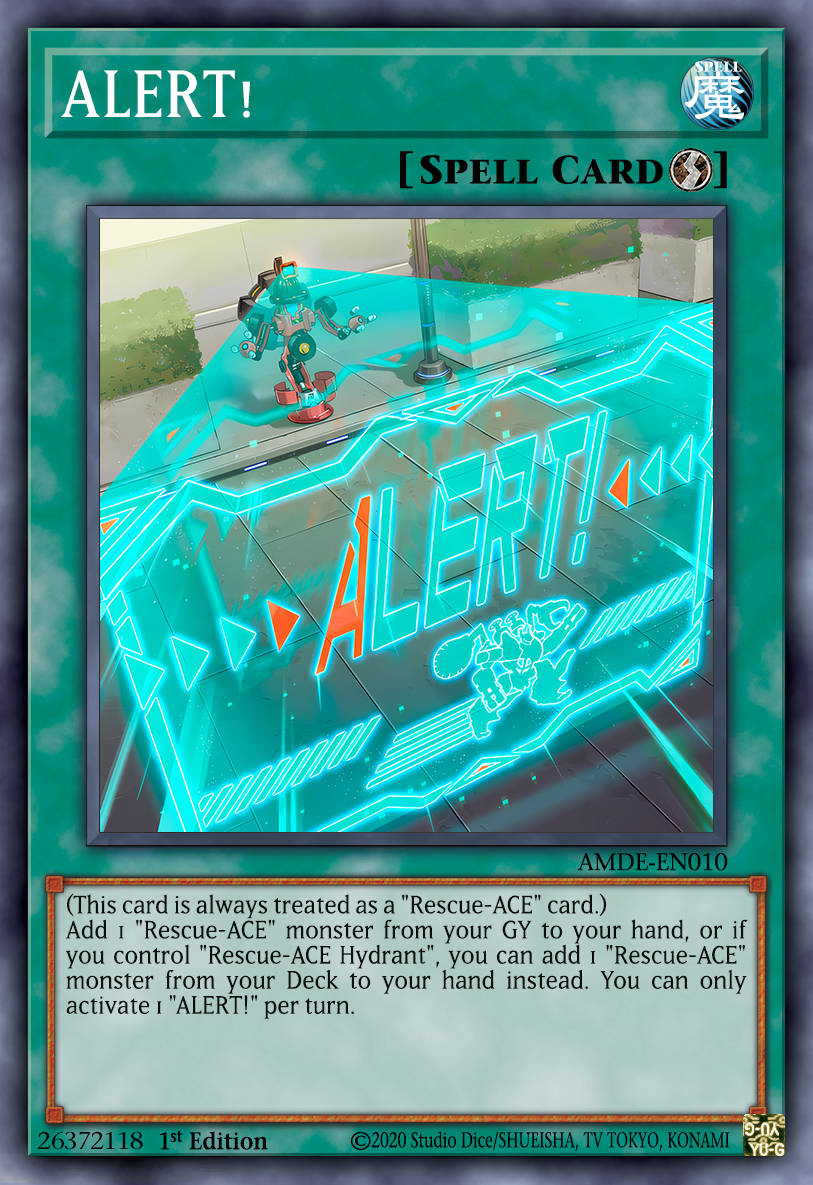 Những lá bài quick-play spell khác cũng rất quan trọng, ALERT! sẽ giúp cầm lại các quái thú R-Ace từ dưới mộ lên tay - thứ sẽ không quá bá đạo. Với Hydrant trên sân, bạn có thể tìm kiếm 1 Rescue-Ace trong bộ bài lên tay, sẽ giúp tăng khả năng cầm lên những R-Ace quan trọng trong bộ bài. Bằng cách sử Dung ALERT! để lấy Turbulence hoặc Preventor, sau đó banish chính ALERT! để triệu hồi chúng.