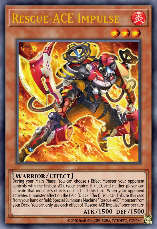 Rescue-ACE Impulse chính là phiên bản Tearlaments Havnis 2.0 của R-Ace, giúp bộ bài chơi được trong lượt của đối thủ khi cho phép triệu hồi đặc biệt quái thú R-Ace từ trong bộ bài bằng cách hiến tế lá bài này ở trên sân hoặc tay. Bạn có thể triệu hồi Air Lifter để bổ sung tài nguyên cho lượt sau hay tạo ra những quái thú có khả năng quẫy nhiễu đối thủ.