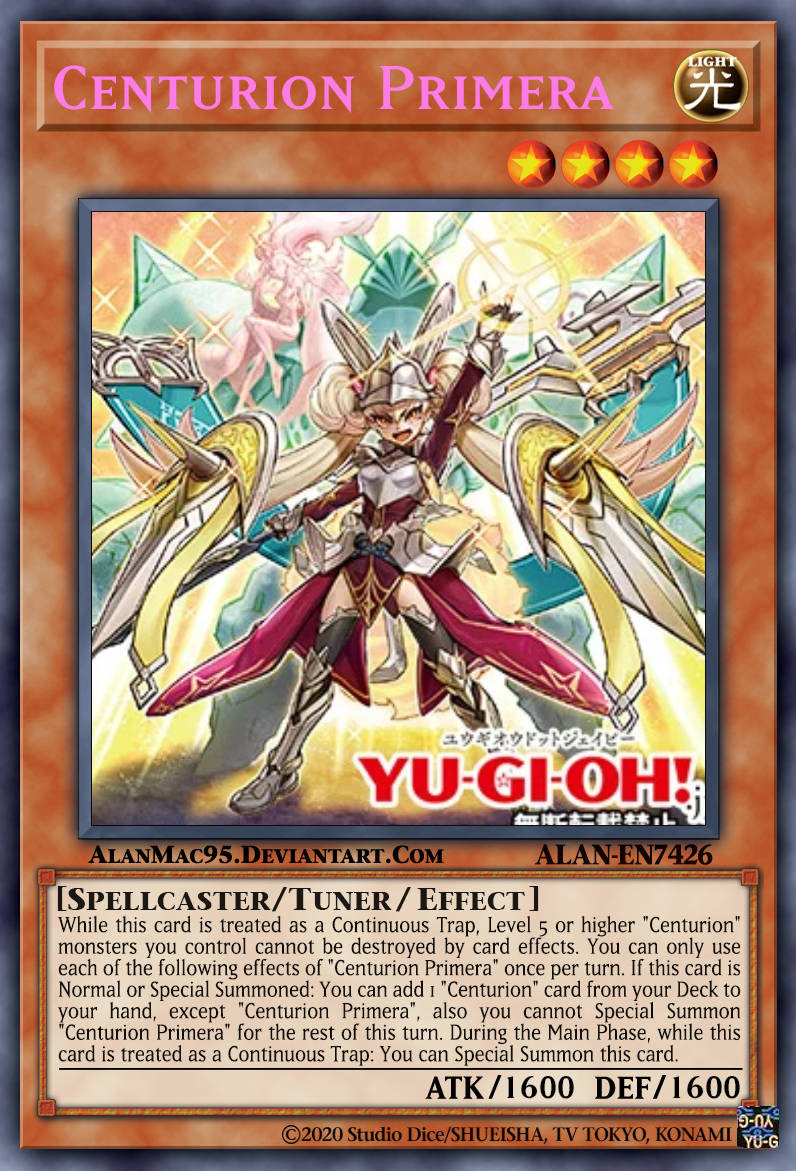Centurion Primera sẽ mang lại khả năng tìm kiếm những lá bài còn thiếu cho việc combo của bộ bài. Khi lá bài này được triệu hồi thường hoặc đặc biệt người chơi có thể thêm 1 lá bài Centurion từ trong bộ bài lên tay ngoại trừ chính nó. Sử dụng hiệu ứng đó có nghĩa là bạn không thể Triệu hồi Đặc biệt bất kỳ bản sao nào của Primera trong phần còn lại của lượt đấu.