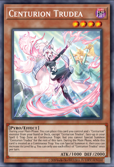 Centurion Trudea có một khả năng tìm kiếm, thứ sẽ chứng minh được sức mạnh của Centurion. Hiệu ứng của quái thú Pyro này cho phép đặt nó vào bất kì Centurion nào khác từ trên tay hoặc trong bộ bài vào khu vưc phép/bẫy. Tương tự với Primera, bạn sẽ không thể triệu hồi đặc thêm bất kì bản sao nào khác của Trudea cho đến cuối lượt đó khi sử dụng hiệu ứng trên. Tuy nhiên vẫn có thể triệu hồi các lá bài khác sau khi đặt vào vùng phép/bẫy.