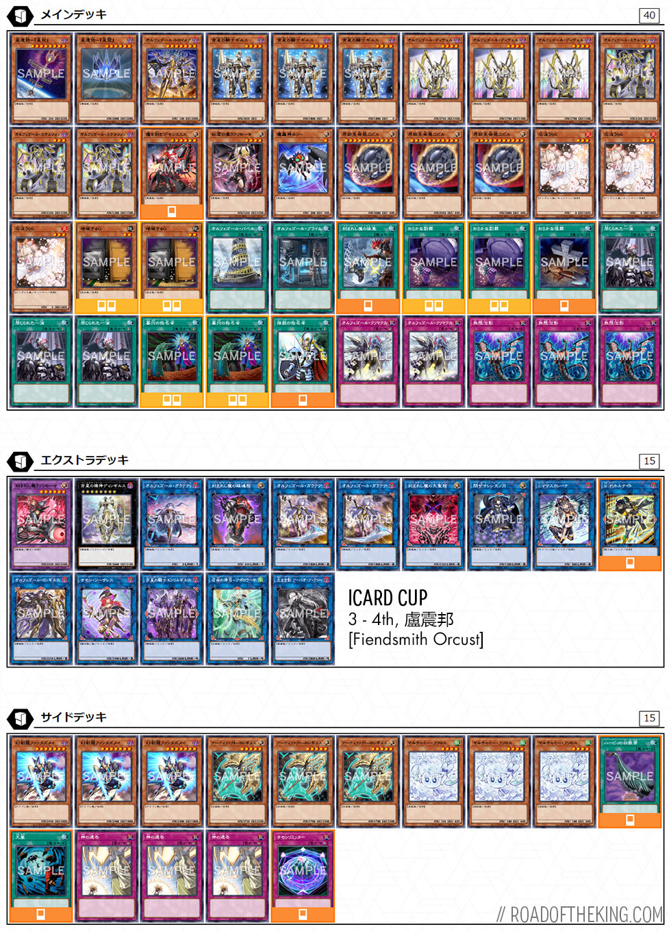34 Orcust (14 Orcust, 13 Fiendsmith Orcust, 3 Horus Orcust, 2 Horus Fiendsmith Orcust, 1 Azamina Orcust, 1 Grass Labrynth Orcust)