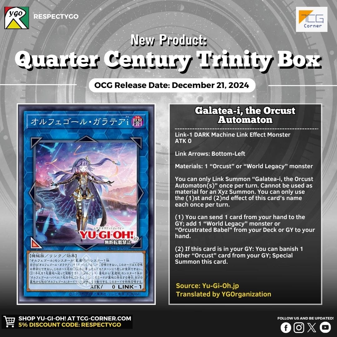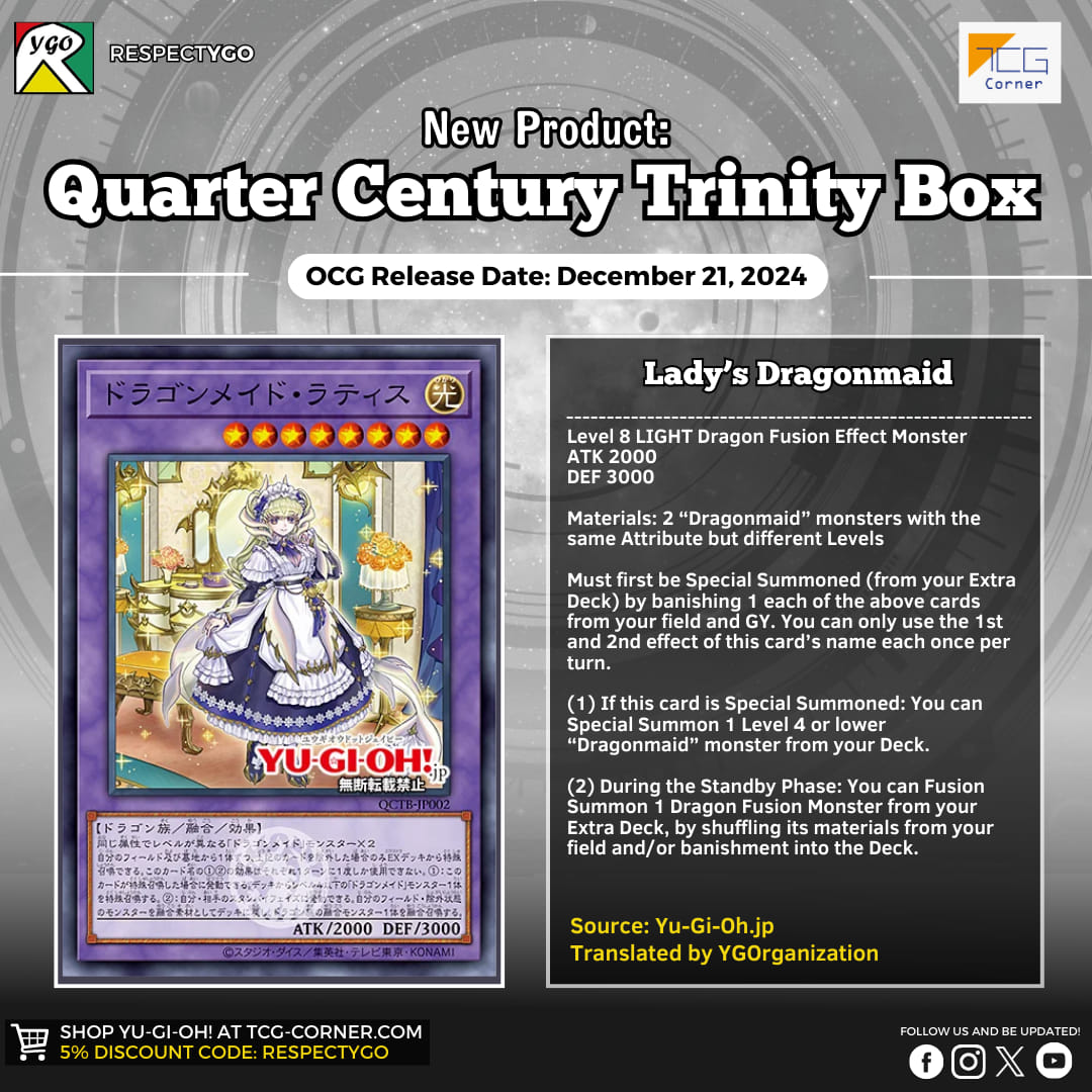 Có tới 2 sản phẩm đổ bộ OCG trong cùng 21/12 là Quarter Century Trinity Box (QCTB) và Premium Pack 2025 (25PP), đây cũng là những sản phẩm cuối cùng chốt hạ 2024. Không chỉ ra mắt những lá bài có trần meta khá cao của Dragonmaid và Orcust, những sản phẩm này còn mang đến các phụ kiện hết sức thú vị. Cùng dạo quanh xem QCTB và 25PP có gì nhé!