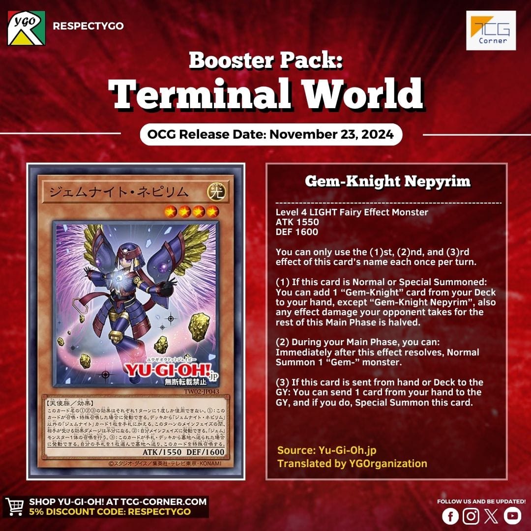 Terminal World 2 - một trong những sản phẩm OCG cuối cùng của năm - đã chính thức ra mắt vào hôm nay (23/11). Tương tự TW01, TW02 cũng mang đến support cho các tộc bài trong Duel Terminal lore. Cùng tìm hiểu xem booster này có gì đặc biệt nhé!