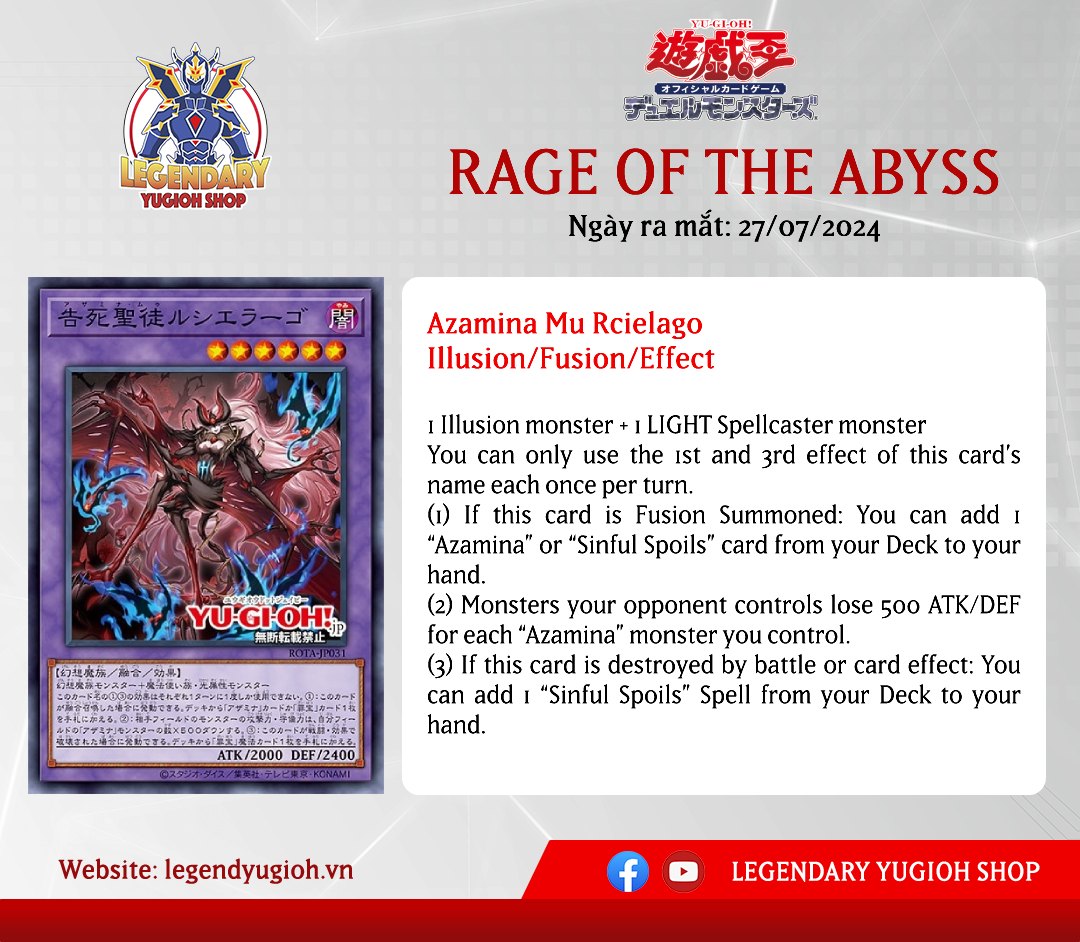 Banlist lấy đi của Snake-Eye 2 starter thì ROTA đã bù lại ngay 3 starter khác. Chỉ với Sinful Spoils Deception search Sacred Azamina có thể access ra WANTED thông qua Azamina Mu Rcielago. Đáng sợ hơn, engine có thể gọi Azamina Rhea Silvera - một omni negate - để bảo kê full combo Fiendsmith Snake-Eye khỏi mọi handtrap. Với engine cực synergy này, Snake-Eye đã trở lại vị thế vốn có, đánh bật R-ACE hay Yubel khỏi top meta dù mới chỉ chiếm giữ ít lâu.