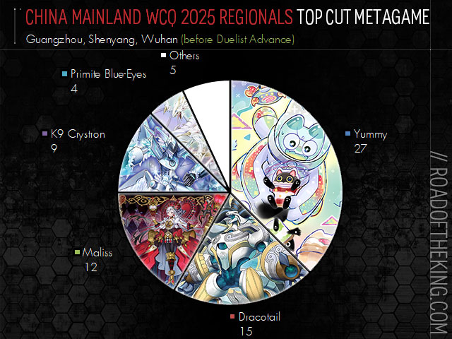 Giải đấu tại Guangzhou, Shenyang và Wuhan diễn ra trước Duelist Advance, do đó top meta là Yummy, Dracotail và Maliss, trong đó Yummy nổi bật nhất với 5/9 slot.