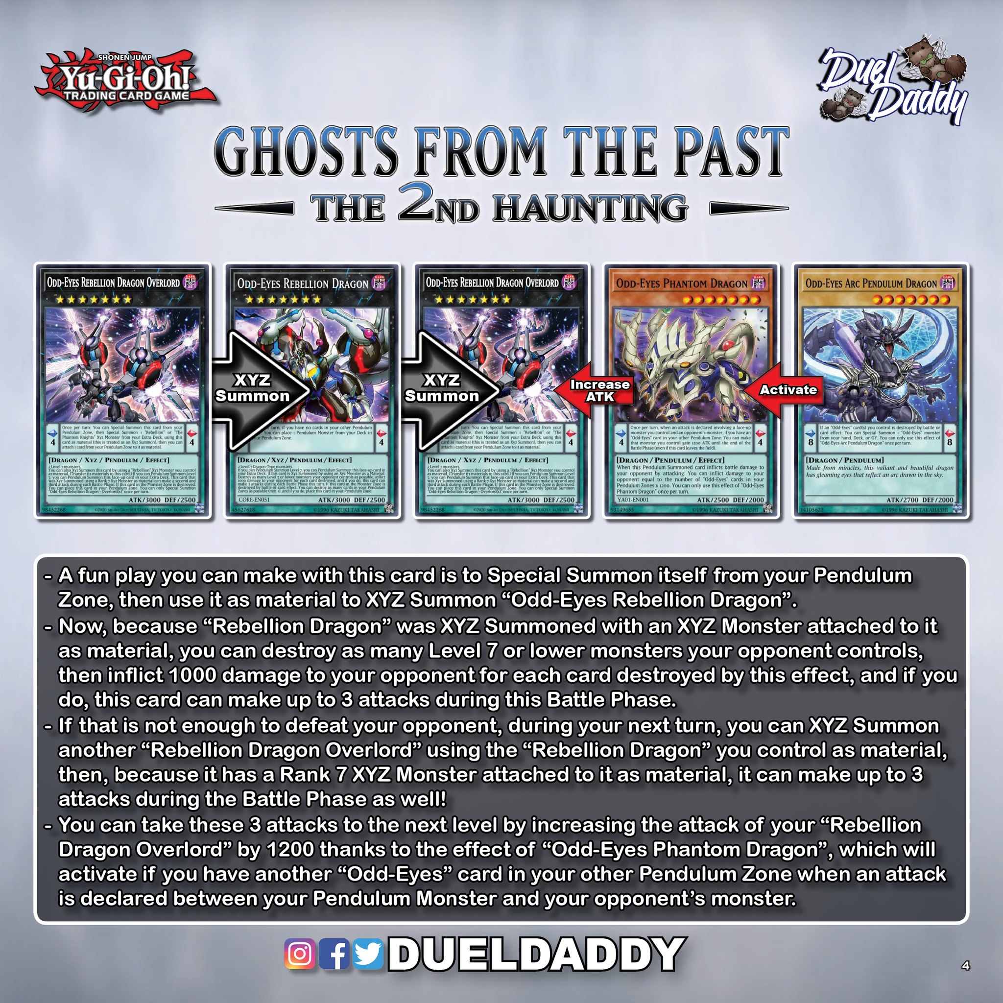 Ghost From The Past 2 đã ra mắt ở TCG, mang theo những bản in lại của những lá bài vô cùng chất lượng như Aluber the Jester of Despia, Crystron Halqifibrax,... cũng như cho ra mắt những lá bài mới vô cùng quan trọng đối với một số Archeytype, như Borrelend Dragon cho Dragonlink hay Decode Talker Heatsoul cho các Deck Cyberse,... Hôm nay, chúng ta sẽ đi vào tìm hiểu một lá bài sắp ra mắt để hỗ trợ cho một Archetype khá nổi tiếng trong Anime Yu-Gi-Oh! ArcV, đó chính là tộc Odd-Eyes, với lá bài Odd-Eyes Rebellion Dragon Overlord và các combo người chơi có thể ứng dụng với lá bài này.