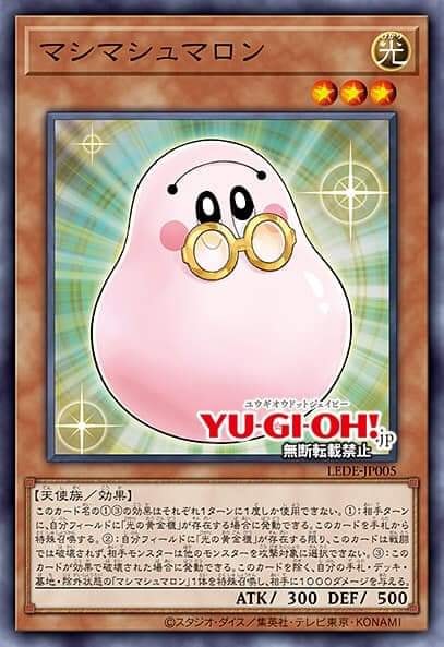 (3) If this card is destroyed by card effect: You can Special Summon 1 of your other “Marshmarshmallon” that is banished or in your hand, Deck, or GY, and if you do, inflict 1000 damage to your opponent.