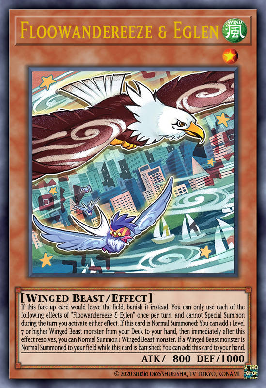 Floowandereeze & Eglen với hiệu ứng gần giống với Robina cho phép tìm kiếm một quái thú Winged Beast cấp 7 hoặc cao hơn từ trong bộ bài khi được triệu hồi thường và ngay lập tức triệu hồi thường một quái thú Winged Beast. Eglen chính là cầu nối các quái thú Winged Beast mạnh mẽ cấp cao như Raiza the Mega Monarch, Mist Valley Apex Avian,...